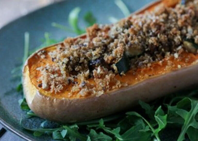 Vegan stuffed butternut squash with roast…
